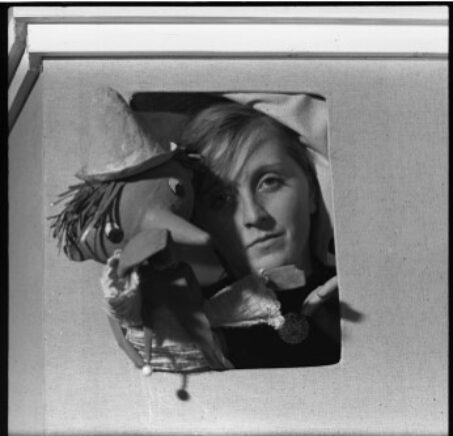 Gabriele Hänel et la marionnette de Pinocchio, Wittenberg, 1974